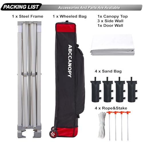 ABCCANOPY ABCCANOY 3 x 4,5 m paviljoen waterdicht pop-up tuinpaviljoen festival zonwering met 4 zijdelen + handtas, wit, met wielen, opbergtas